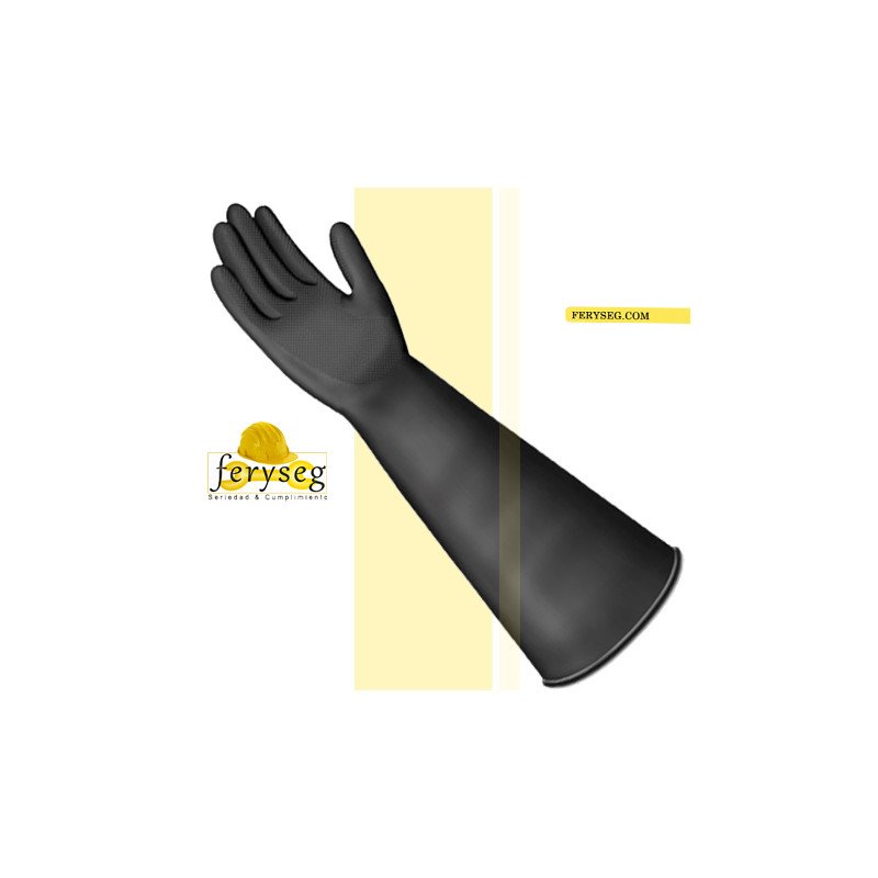 Guante caucho tipo mosquero largo en diferentes tallas.