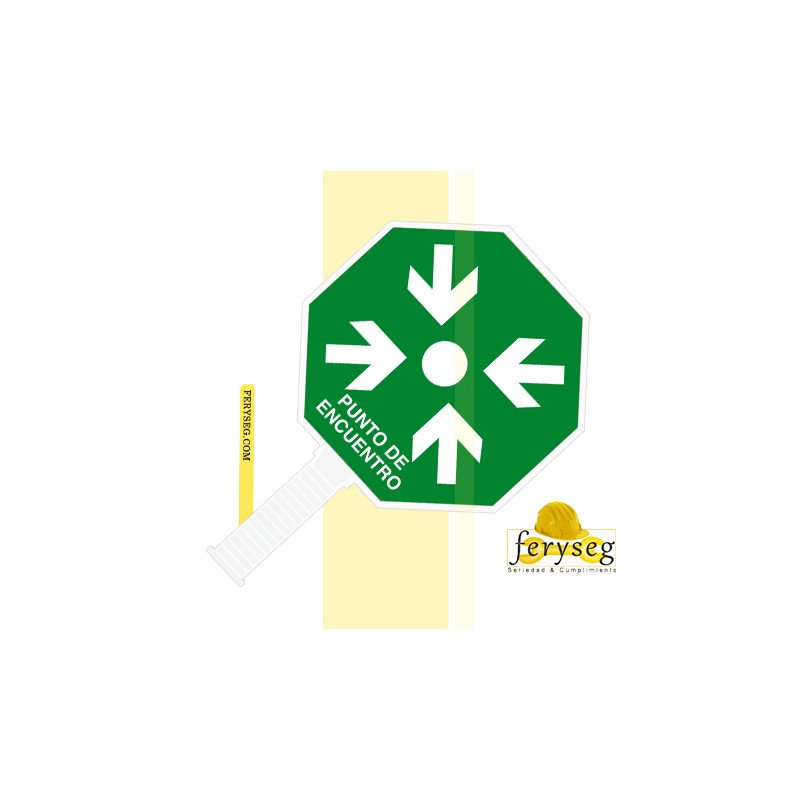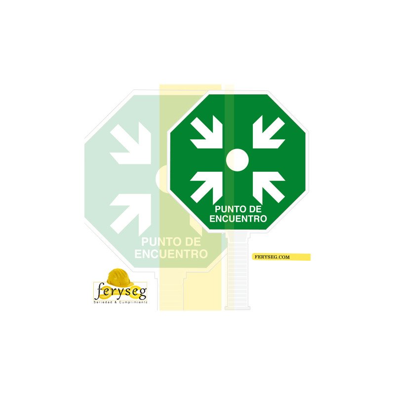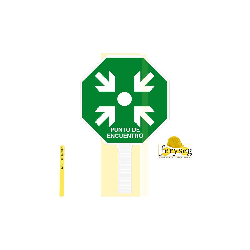 Las paletas de señalización punto de encuentro están fabricadas en materiales de alta resistencia, colores reflectantes a la luz.