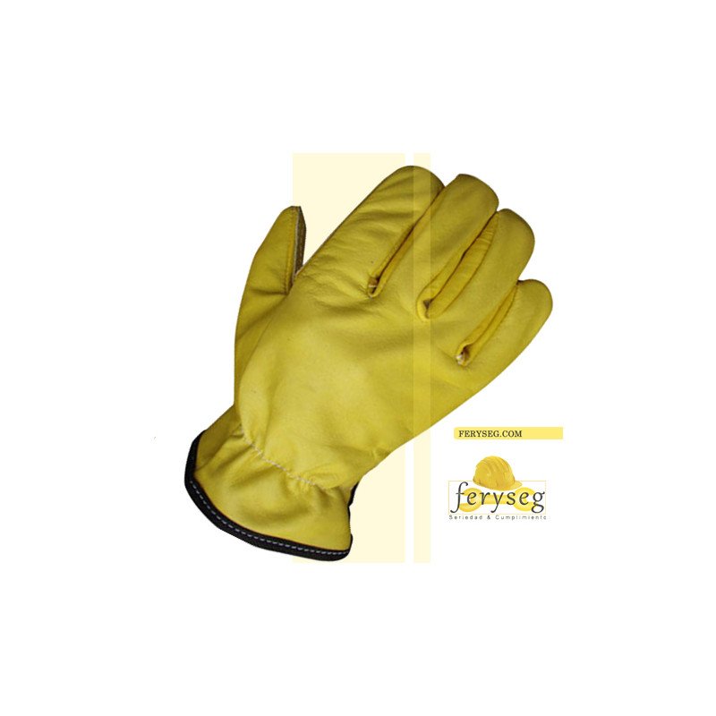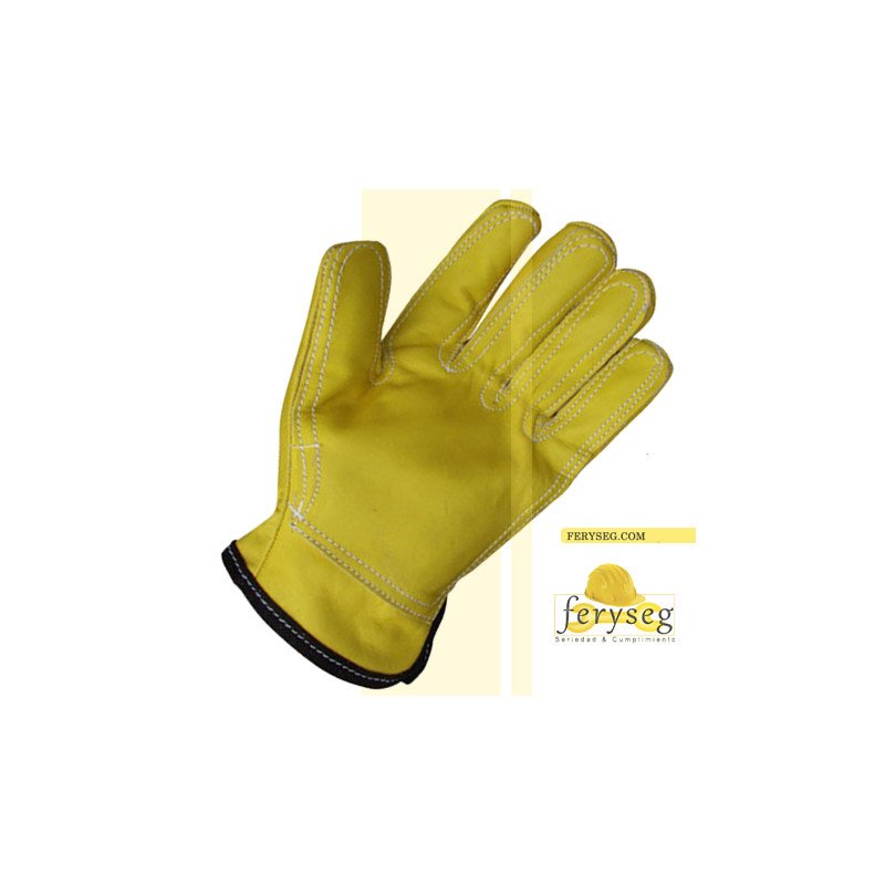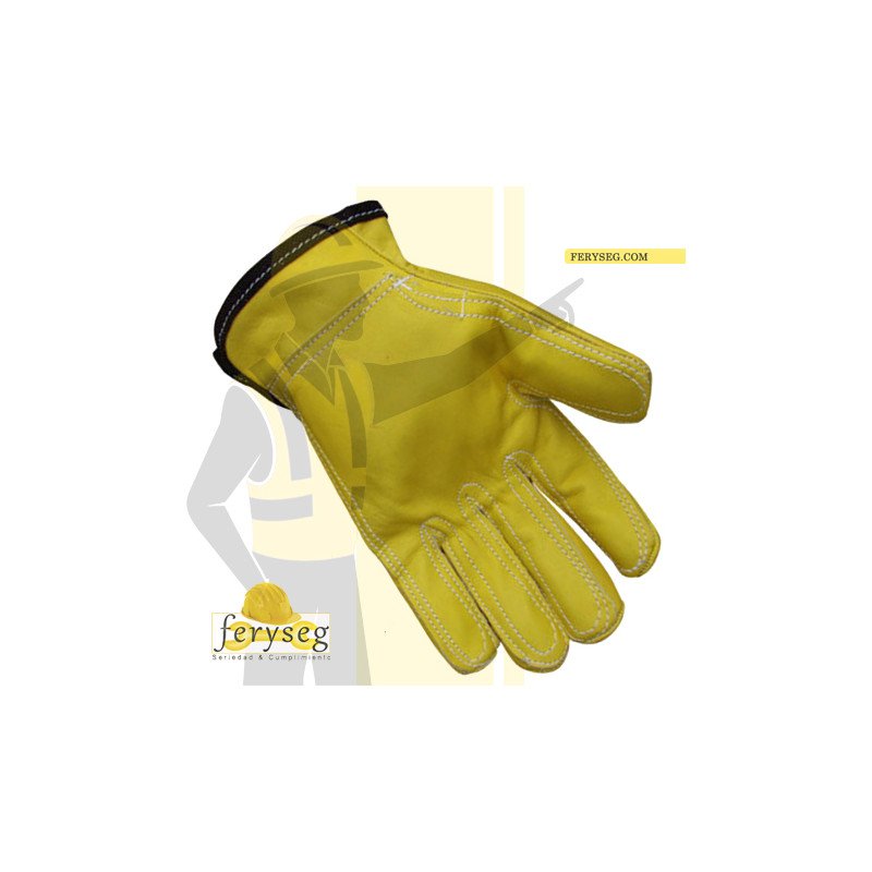 Guante de vaqueta en cuero de res, vaqueta de alta suavidad, esto permite comodidad y maniobrabilidad, color amarillo, talla única, guante tipo ingeniero, resistencia al desgarre de 80 Kg recomendado para labores como: